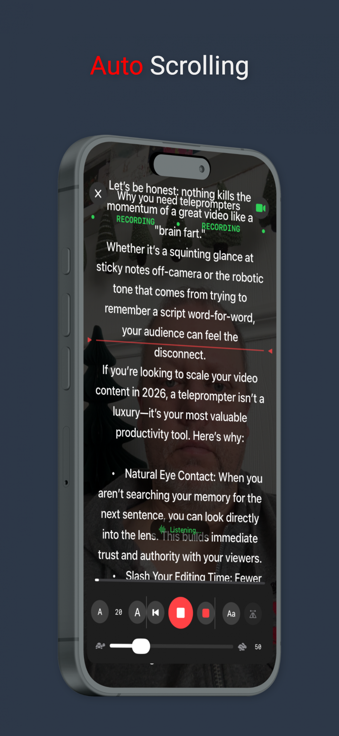 Record yourself directly in the app with the script overlaid, ensuring you’re always looking at the lens.